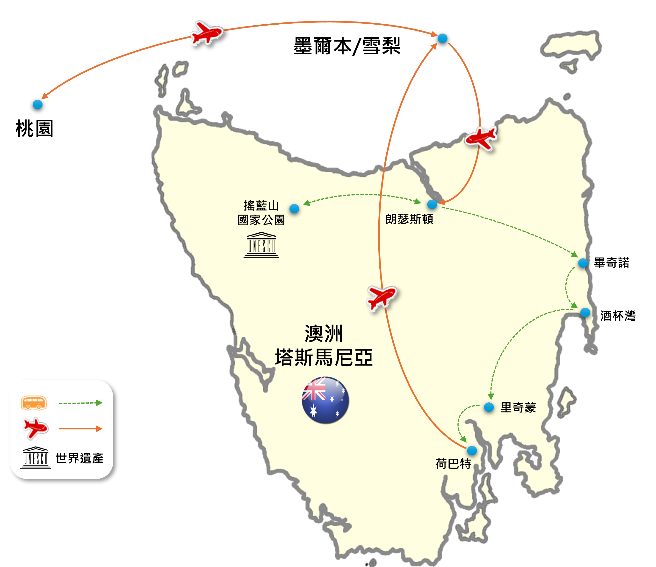 【行車時間】酒杯灣-2hrs里奇蒙小鎮-1hr威靈頓山 -30mins荷巴特